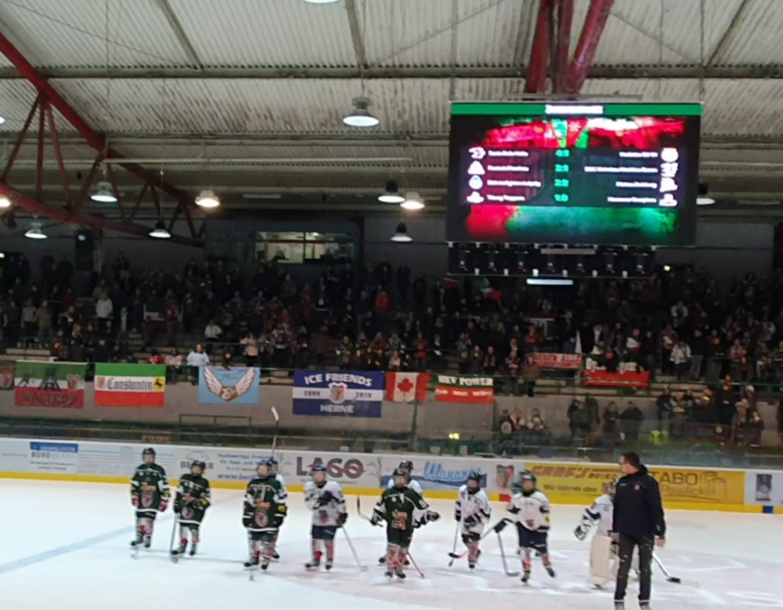 Ein alljährliches Highlight für alle Spieler bildet das Pausenspiel bei der 1. Mannschaft. Dies stand am Freitag den 22.11.2019 im Rahmen der Partie gegen die Crocodiles aus Hamburg auf dem Dienstplan. Mit einer Auswahl von 10 Feldspielern und 2 Torhütern gingen die Kinder im Alter von 9 und 10 Jahren während der 1. Drittelpause auf die große Eisfläche. Dies ist immer ein außerordentliches Ereignis, da die Turniere dieser Altersklasse auf dem Kleinfeld ausgetragen werden. Auch bei diesem Kurzeinsatz zeigten alle Spieler ihr Können und die Goalies glänzten mit schönen Paraden.