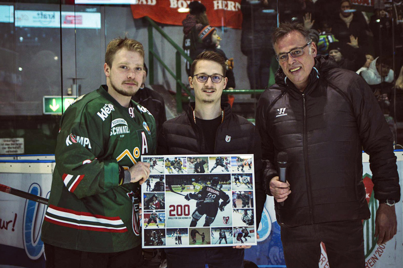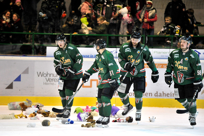 Bereits vor dem Spiel gegen Rostock gab es viel Applaus von den Zuschauern. Kapitän Nils Liesegang wurde von Geschäftsführer Jürgen Schubert für seinen 200. Einsatz im Trikot des Herner EV geehrt. Mit Spielbeginn begann dann das Warten auf den ersten Herner Treffer und den damit verbunden „Teddy Bear Toss“.
