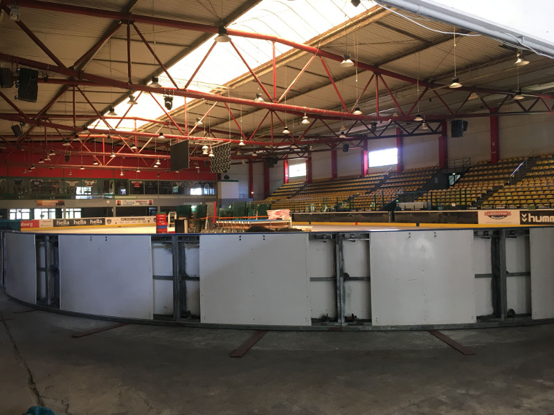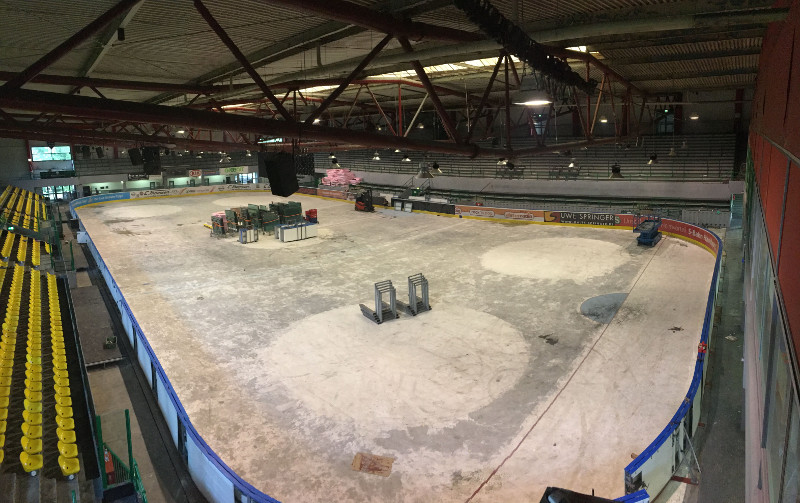 In der Hannibal-Arena sieht es mittlerweile schon wieder mehr nach Eishockey aus, wenngleich noch Einiges an der neuen Bande zu tun ist.