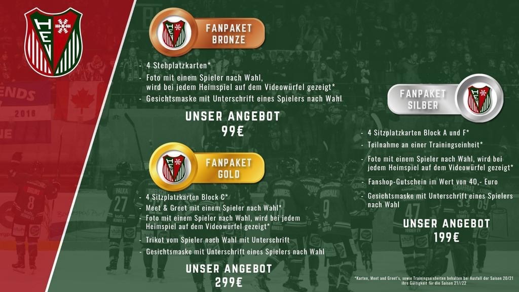Dabei bekommen sie die Möglichkeit ihrer Mannschaft noch näher zu sein, beispielsweise bei einer Trainingseinheit auf dem Eis oder bei einem „Meet and Greet“ mit einem Spieler nach Wahl. Zudem lassen sich ganz einfach Trikots, Fotos (welche auf der Leinwand in der Hannibal-Arena präsentiert werden), Gutscheine für den Fanshop oder Masken erwerben. Diese Pakete sind natürlich auch für Firmen zu erwerben. Buchbar sind die Pakete ganz einfach auf www.hev-fanpaket.de
