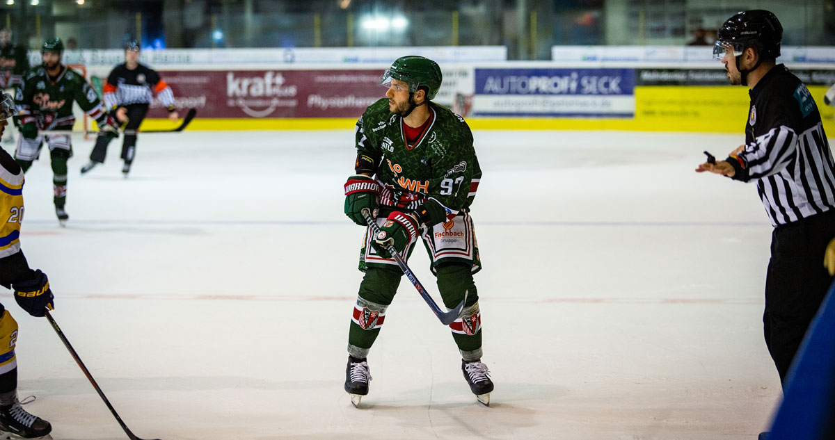 Dennis Swinnen spielt auch in der Saison 2022/23 in Grün-Weiß-Rot. Der Außenstürmer kam vor der abgelaufenen Spielzeit von den Dresdener Eislöwen an den Gysenberg und wird weiterhin mit der Nummer 97 auf das Eis gehen.