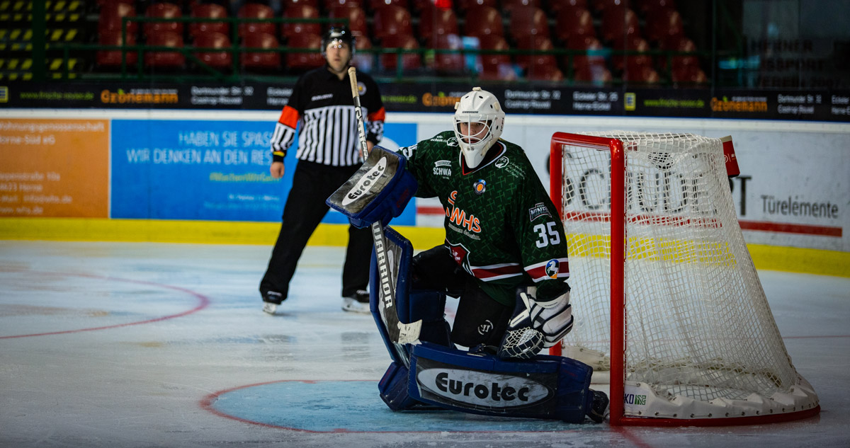 Im ersten Abschnitt war Herne gut im Spiel, scheiterte jedoch immer wieder am starken Lucas Di Berado im Gehäuse der Piranhas. Artur Tegkaev traf das leere Tor nicht, Marcus Marsall lief alleine auf den Goalie zu, konnte ihn aber nicht überwinden und auch Kevin Orendorz schoss nur an das Außennetz. Rostock machte es auf der anderen Seite deutlich besser. Mit der ersten Chance brachte Lukas Koziol die Gastgeber in Führung und das zweite Tor war dann ein erstes Geschenk der Miners. August Von Ungern Sternberg spritzte in einen zu laschen Querpass an der Blauen Linie, lief alleine auf Finn Becker zu und lies dem jungen Goalie keine Chance. Somit nahmen die Gastgeber eine 2:0-Führung mit in die erste Pause.