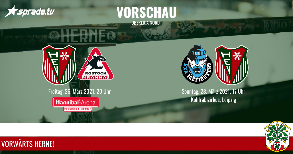 Für den Herner EV stehen an diesem Wochenende zwei Partien auf dem Spielplan. Am Freitagabend kommt es in der Hannibal-Arena zum Duell mit den Rostock Piranhas (20 Uhr). Am Sonntag fährt der HEV zu den EXA IceFighters nach Leipzig. Bully im Kohlrabizirkus ist dann um 17 Uhr.