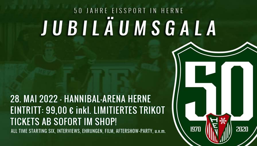 Am Samstag, 28. Mai 2022, findet in der Hannibal-Arena Herne die Gala anlässlich des 50-jährigen Bestehens des Herner Eissports statt. Auf Grund der Corona-Pandemie musste die Festlichkeit zweimal verschoben werden. Deshalb feiert Herne nun „50+2“!