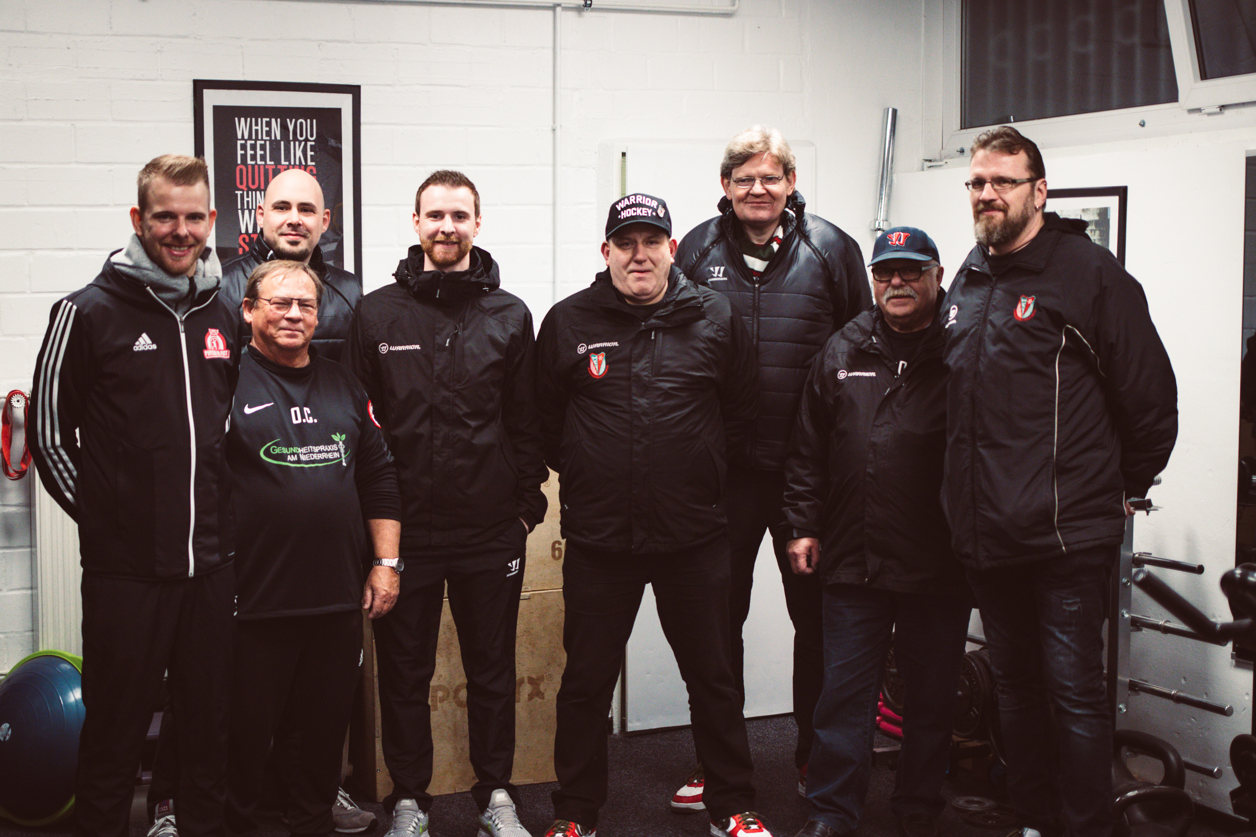 Thomas, Matthias, Hans-Werner und Carsten sind als Betreuer ehrenamtlich für die Versorgung der 1. Mannschaft zuständig und können gemeinsam auf viele Jahre Erfahrung zurückblicken. Nicht nur während des Spiels wird ihre Unterstützung benötigt, sondern auch bereits mindestens 2,5 Stunden vor jedem Spiel zur Vorbereitung der Kabine und 1 Stunde nach Spielende. Zudem sind sie auch während der Trainingszeiten vor Ort. Zu ihren Aufgaben gehören weiterhin die Materialverwaltung und -pflege, das Schleifen der Schlittschuhe, kleinere Reparaturen, das Waschen der 6-8 Maschinen Wäsche täglich sowie der erste Ansprechpartner für sämtliche anfallenden Fragen und Angelegenheiten zu sein.