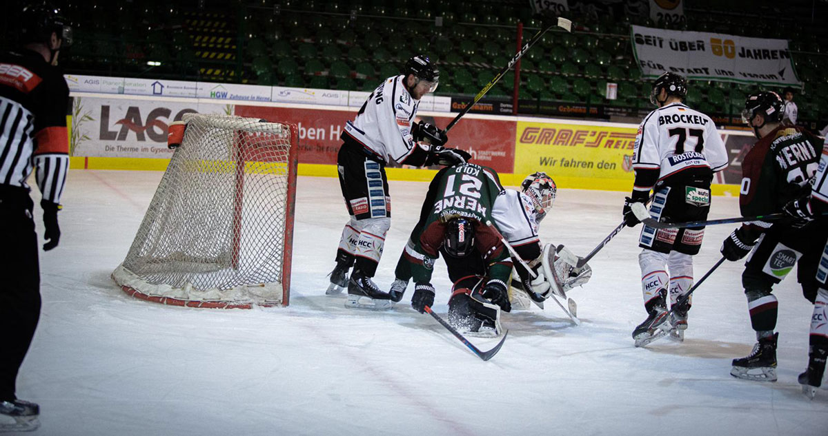 Wiederum 45 Sekunden später machte Matthew Pistilli mit dem 1:4 alles klar. Herne setzte zwar noch mal alles auf eine Karte, kam mit einem Mann mehr auf dem Eis, Danny Albrecht hatte Björn Linda früh aus dem Tor genommen, durch Ackers zwar noch zum 2:4 (57.), doch Tom Pauker beendete mit einem Empty-Net-Goal die letzten kleinen HEV-Hoffnungen auf einen Punktgewinn.
