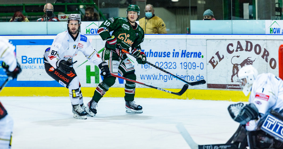 Doch Erfurt-Coach Raphael Joly stellte in der letzten Pause etwas um. Sofort bekam sein Team mehr Zugriff auf die Partie und hatte auch das Glück auf seiner Seite. Kurz nach Wiederbeginn fälschte Robert Peleikis einen Schuss von Thomas Schmid zum 2:3 ab. Zwar konnte Herne durch Tomi Wilenius noch mal den alten Abstand herstellen, doch dann nahm sich Kyle Beach der Partie an. Erst vollendete er eine Einzelaktion zum 3:4, wenig später fiel ihm ein eigentlich missglückter Pass direkt auf die Kelle und schnell war der Ausgleich da. In den letzten zwei Minuten spielte der HEV noch mal in Überzahl, doch der Siegtreffer wollte in regulärer Spielzeit nicht mehr fallen.