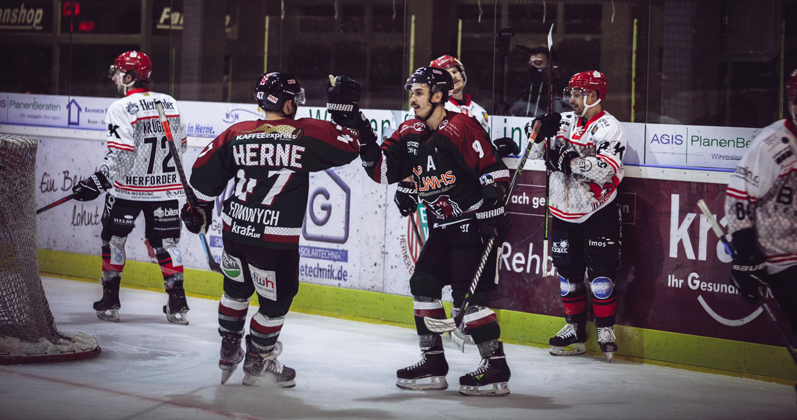 Dieses neue Selbstvertrauen nahm Herne mit in den Schlussabschnitt. Denis Fominych erzielte im Nachschuss den Ausgleich (47.), dann war es Zeit für Nico Kolb und Colton Kehler. Kolb legte dem Kanadier zweimal vor, Kehler schloss zweimal eiskalt ab (48., 55.). In der letzten Spielminute wurde Marcus Marsall noch ein „technisches Tor“ zugesprochen, da er allein auf das leere Tor der Gäste zulief, dabei aber unfair am Torschuss gehindert wurde. „Ich kann meinem kleinen Kader nur ein großes Lob aussprechen. Die Jungs haben sehr hart für diesen Erfolg gearbeitet“, war Danny Albrecht abschließend vom Einsatz seiner drei Reihen absolut angetan.