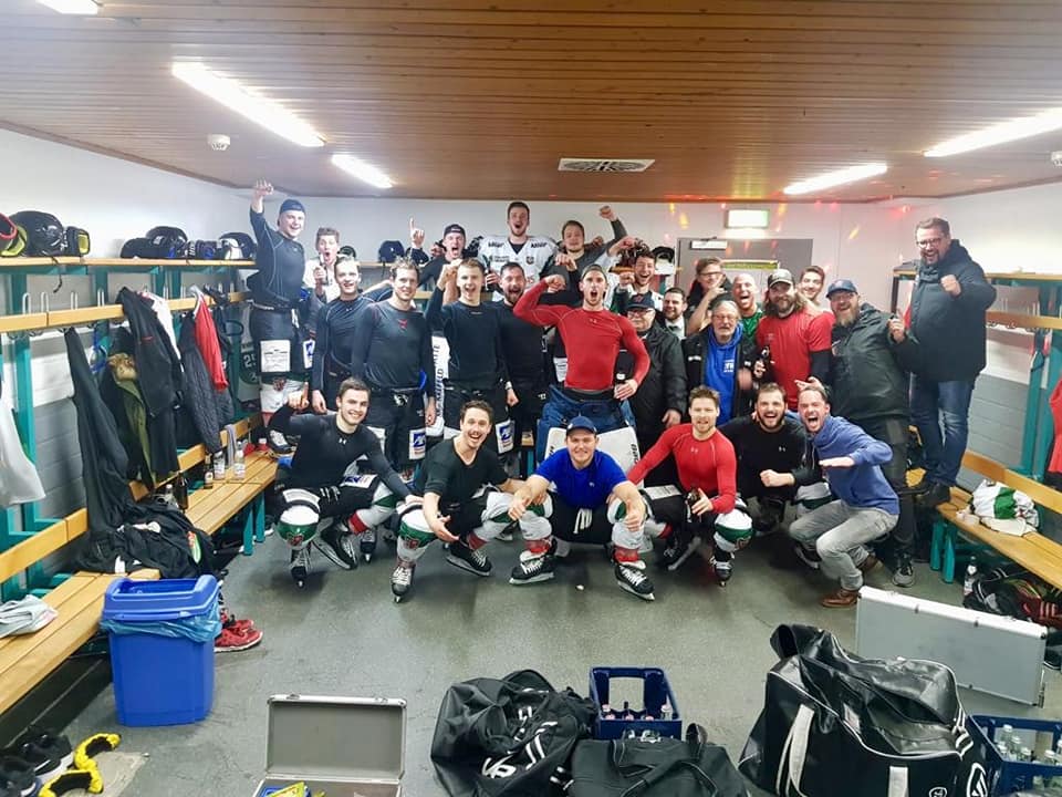 Im Schlussdrittel schien die Partie zu kippen, denn in der 44. Minute konnten die Eisbären zu ihrem ersten Überzahl-Treffer in dieser Serie kommen und den 2:2-Ausgleichstreffer erzielen. Diesen Schwung nahmen sie mit und gingen nur 73 Sekunden später zum allerersten Mal in Führung. Aber neben all den erwähnten Playoff-Tugenden bewies der HEV auch Moral und so konnte in der 47. Minute Patrick Asselin nach optimaler Vorarbeit von Nils Liesegang in Überzahl den Ausgleich zum 3:3 erzielen. Daraufhin nahmen die Regensburger eine Auszeit und erhöhten noch einmal den Druck. Es folgte Spannung pur, das Spiel wogte hin und her und es gab Chancen auf beiden Seiten. Das bessere Ende für die Grün-Weiß-Roten läutete dann Marcus Marsall in der 57. Minute ein, als er von der linken Seite einfach mal abzog und mit seinem etwas verdeckten Schuss zum 3:4 traf. Die Regensburger nahmen erst spät den Torhüter herunter, aber auch gegen sechs Feldspieler hielt der Herner EV das Ergebnis und den Sweep. Danach war feiern angesagt, wahrscheinlich bis zur Ankunft am Gysenberg.