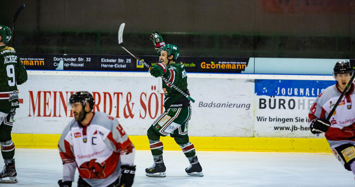 In der Folge konnte sich Herne bei Björn Linda bedanken, der gegen Erik Gollenbeck und Michael Fomin zweimal stark rettete, ehe der HEV wieder besser ins Spiel fand. Die größte Möglichkeit hatte Marcus Marsall, doch sein Rückhand-Schuss prallte vom Pfosten ins Spielfeld zurück.