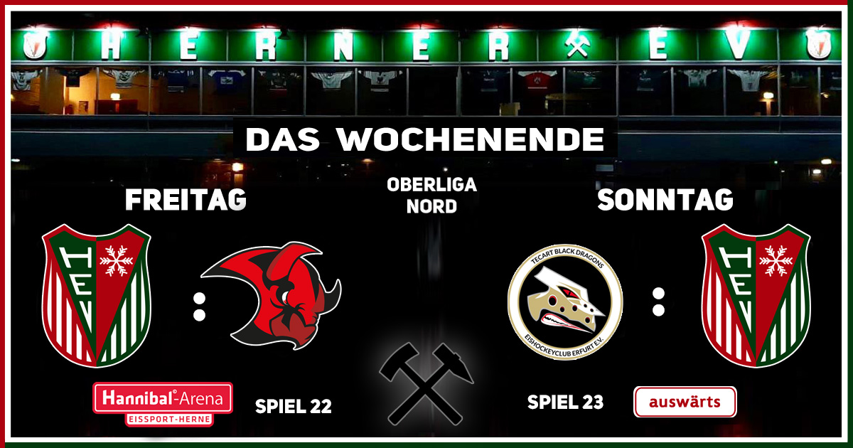 Mit dem Heimspiel am Freitagabend in der Hannibal-Arena (20 Uhr) endet die erste Hälfte der Oberliga Nord Hauptrunde für den Herner EV, am Sonntag starten die Gysenberger dann ab 16 Uhr in Erfurt bei den TecArt Black Dragons nahtlos in die zweite Serie. Nachdem der HEV am letzten Sonntag im 10. Heimspiel die erste Niederlage auf eigenem Eis einstecken musste, wollen die Grün-Weiß-Roten nun am Freitagabend eine neue Serie starten. Keine leichte Aufgabe gegen das Team aus Sachsen-Anhalt, das acht der letzten neun Spiele für sich entscheiden konnte.