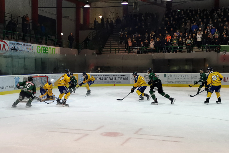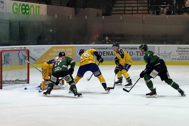 Herne versuchte es zunächst recht offensiv, doch der erhoffte frühe Torerfolg blieb aus. Man stellte Mitte des ersten Drittels um und ließ die Gäste aus Tilburg etwas mehr aber kontrolliert agieren. Die Umstellung brachte den gewünschten Erfolg. Nils Liesegang sorgte mit der 1:0 Führung in der 13.Minute für den ersten Herner Jubel des Abends. Tilburg bekam zwar nun weitere Spielanteile, den nächsten Treffer erzielten aber wieder die Herner. In der 24.Minute schoss Christopher Kasten zum 2:0 ein. Nur eine Zeigerumdrehung später nutzte Danny Stempher für Tilburg die Chance zum 2:1. Es war längst ein Spiel auf Augenhöhe, indem die Teams keine vorweihnachtlichen Geschenke verteilen wollten. Immer wieder standen die Torhüter im Mittelpunkt. Mit 2:1 für Herne ging es in einen furiosen Schlussabschnitt.
