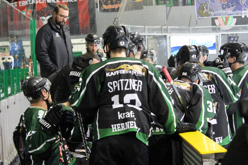 Ab dem zweiten Drittel kamen die Grün-Weißen dann besser ins Spiel und sie hatten in der 25. Minute eine gute Möglichkeit, die der Torhüter der Trappers zunichtemachte. Begünstigt durch drei Strafzeiten gegen die Gäste in kurzer Folge hatte der HEV nun mehr vom Spiel, ein Treffer sollte aber (noch) nicht gelingen. Da war es dann schon etwas bitter, dass die Trappers eine Sekunde vor der zweiten Pausensirene sogar noch zu ihrem vierten Treffer kamen.