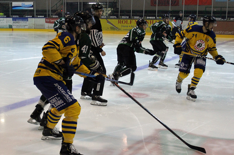 Anders als in den meisten bisherigen Playoff-Spielen dieser Saison konnte der Herner EV dieses Mal nicht das erste Tor schießen. Es waren die Trappers, die bereits nach drei Minuten 1:0 in Führung lagen. Und es sollte noch schlimmer kommen, denn weitere drei Minuten später erhöhten die Trappers auf 2:0. Der HEV hatte zwar auch seine Chancen, so z.B. durch Philipp Kuhnekath schon in der 1. Minute oder Nico Kolb in der 6. Minute, aber die Tilburger agierten druckvoller und zielsicherer. So stand dann nach 16 Minuten sogar ein 0:3 auf der Anzeigetafel.