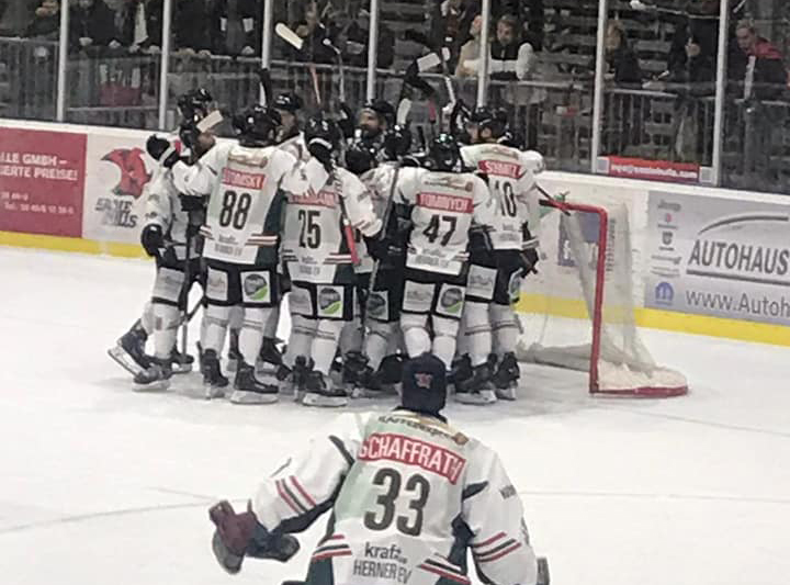 Noch im ersten Drittel sorgte Dennis Palka für den 1:2 Anschluss. Nils Liesegang traf dann gleich zu Beginn des zweiten Drittels zum Ausgleich. Spätestens jetzt waren die Herner auf der Erfolgsspur angekommen. Einzig mit der Chancenverwertung konnte man nicht zufrieden sein. „Wir hätten durchaus mehr Treffer erzielen können“, Danny Albrecht sah noch einige gute Chancen, doch nur noch der Siegtreffer durch Nils Liesegang in der 34. Minute sollte die Mannschaft vom Gysenberg jubeln lassen. Die selten zwingenden Chancen von Halle waren dagegen sichere Beute von Hernes Schlussmann Björn Linda. Im letzten Drittel zeichneten sich dann die Torleute Björn Linda und der Ex-Herner im Hallenser Tor, Michel Weidekamp mit einigen gute Paraden aus, so dass es am Ende bei einem knappen, aber verdienten 3:2 Erfolg für die Herner blieb.