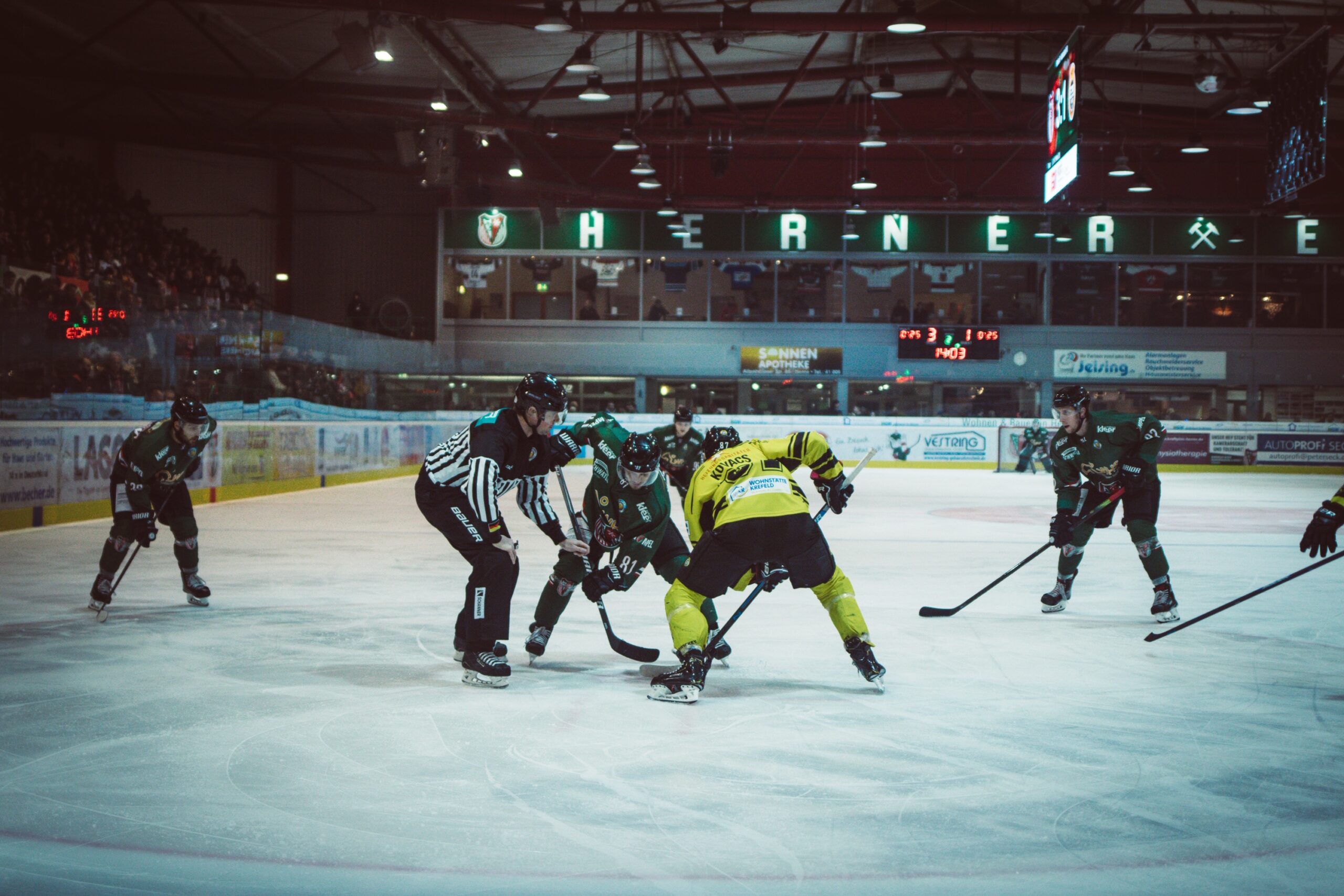 Die Herner, die ohne den grippekranken Nils Liesegang auskommen mussten, beherrschten im ersten Drittel das Spiel. Zwar war der Tabellenletzte aus Krefeld immer wieder nach Kontern gefährlich, doch die größeren Chancen hatte der HEV. Dominik Piskor glich die Gäste-Führung aus, nachdem er, von der Strafbank kommend, Nils Kapteinat keine Chance ließ. Anderthalb Minuten vor Drittelende besorgte dann Julius Bauermeister, mit seinem ersten Saisontor, die Führung mit einem Schuss von der blauen Linie.