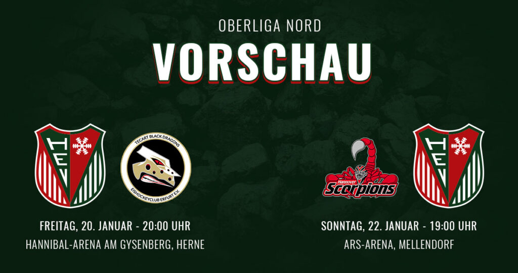 Der Herner Eissportverein hat das Heimspiel gegen die TecArt Black Dragons Erfurt mit 6:2 (1:2/4:0/1:0) für sich entscheiden können. Am Sonntagabend geht es zum enteilten