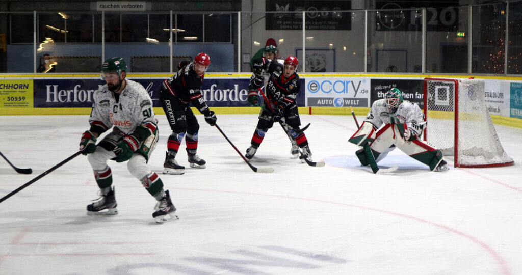 Der Herner EV hat das Spiel beim Herforder EV mit 2:3 (0:1/2:0/0:1/0:1) nach Verlängerung verloren und den Sprung auf Platz sechs verpasst. Am Sonntag kommt