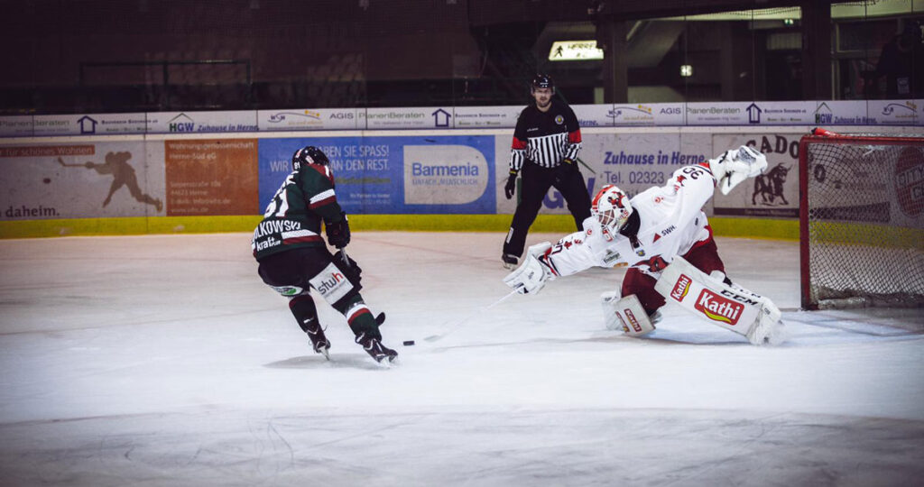 Nur einen Zähler gab es am Wochenende für den Herner EV. Gegen die Saale Bulls aus Halle gab es eine 5:6-Niederlage nach Penaltyschießen, bei den