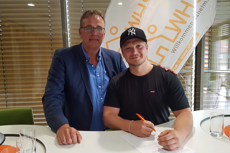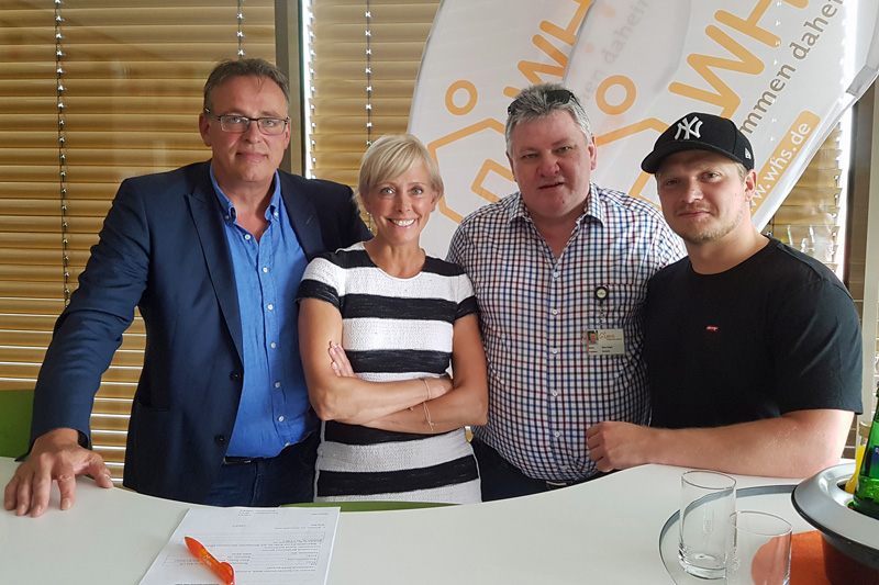 Die Vertragsunterschrift von Nils Liesegang erfolgte am späten Mittwochnachmittag in den Geschäftsräumen der WHS (Wohnungsgenossenschaft Herne-Süd eG) im Beisein von Simone Hitzler (WHS-Vorstand) und Klaus Karger (geschäftsführendes Vorstandsmitglied der WHS). Zusammen mit HEV-Geschäftsführer Jürgen Schubert wurde auch der neue Sponsorenvertrag mit der WHS als Hauptsponsor des Herner EV unterschrieben.