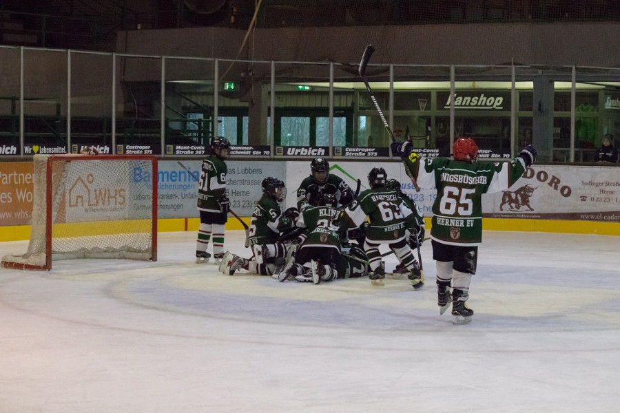 Die Mannschaften des Neusser EV und der Hammer Eisbären reisten auf Grund mehrer erkrankter Spieler stark dezimiert an. Dies hielt die übrigen Spieler jedoch nicht davon ab mit viel Herz und Leidenschaft in die Partien zu gehen. Im ersten Spiel gegen Neuss konnten unsere Jungs und Jana einen Sieg erringen. Im zweiten Spiel gegen Dortmund folgte nach einer ausgeglichenen ersten Halbzeit leider eine Niederlage. Das 3. Spiel gegen die Hammer Eisbären ging dann wieder zu Gunsten unserer Nachwuchsspieler aus. Während der ersten Hälfte des Spiels verletzte sich der einzige Hammer Goalie und musste pausieren. Als Ersatz sprang Maik Baum aus den Herner Reihen ein. Kurz vor Schluss der zweiten Hälfte ging es dann aber mit dem eigenen Goalie bis zur Schlusssirene weiter. Mit einer starken Leistung verabschiedeten sich die Kinder dann ins Wochenende, um neue Kräfte für die Auswärtsfahrt nach Herford am 17.02.2018 zu sammeln. Wir danken natürlich auch wieder allen Eltern und Betreuern für die Hilfe auf und neben dem Eis.