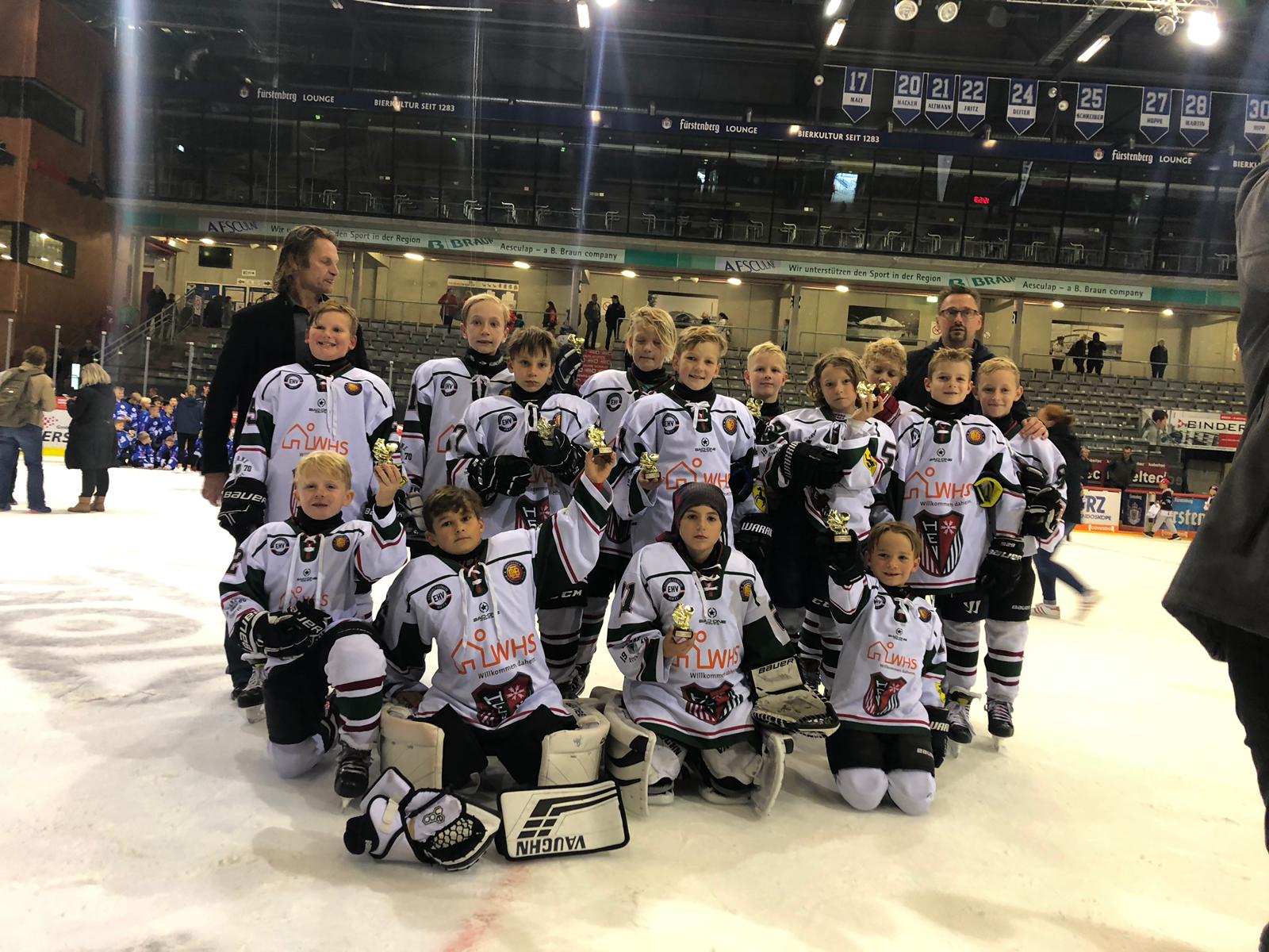 Dieses Selbstvertrauen brauchte unser Nachwuchs auch, denn das Spiel entwickelte sich zu einem richtigen Krimi. Es wurde um jeden cm Eis gekämpft. Der Ausgang des Spiels war völlig offen und man merkte schon, dass drei Spiele den Kids in den Knochen steckten. Selbst als unsere U11 mit zwei Toren zurück lag kämpfte man sich wieder heran, getreu dem Herner-Motto „Herner geben niemals auf“.